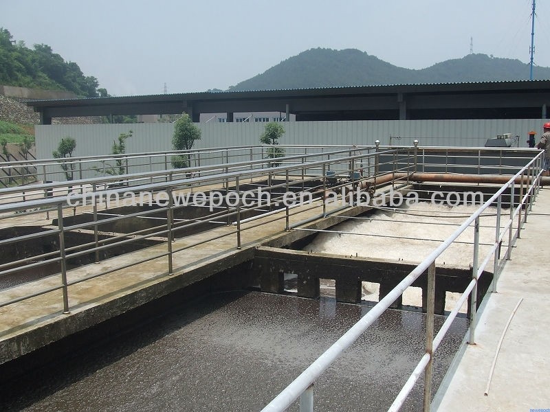 A slaughterhouse wastewater treatment system, its wastewater treatment ability was 200 m3 / d, and its treatment process was as follows: raw water →grid machine→ the oil settling tank→regulating tank→anaerobic bioreacting tank →aerobic bioreacting tank →second sedimentation tank→ sterilization tank, and the discharge of treatment system could meet with the national standard, and the sludge generated was concentrated and pressure filtrated to sanitarily landfill.