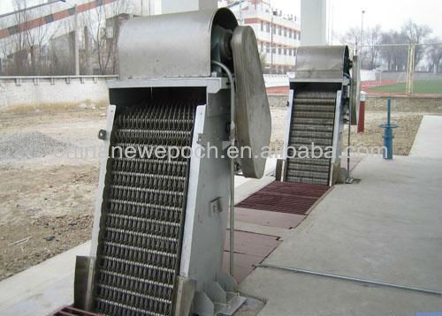 Mechanical screen With special harrow, rotative chain will turning driven by the motor. The harrow of the screen is designed opposite direction to the water flow. When the harrow runs to the top side of the screen, rows of harrow will clean each other due to the guidance of cannel wheel and curved track. Most part of the sundries will fall off because gravity. The rest part will be cleaned up by the reverse running cleaning device. The gap between harrow rows could be fixed in ahead according to the size of sundries. Water flow will be ensured smoothly after the sundries filtered by the screen. The running of the screen could be continuously or intermittent. The biggest advantage of the screen is automatically running, high separating ability, lower power consumption, anti-corrosive. The equipment can running automatically without any operator due to its overloading protection device. During fault period, the screen will stop immediately. Any kind of running way could be set according to site situation. Manual control is also available for easy recondition.
